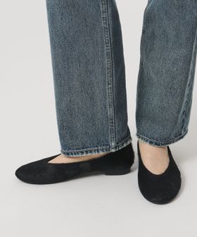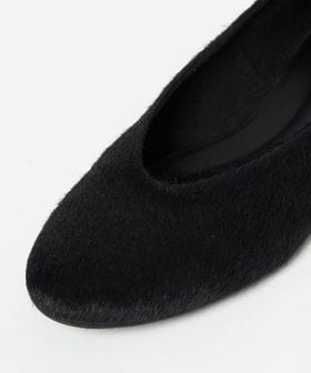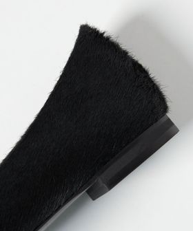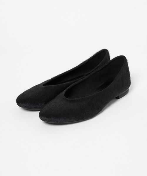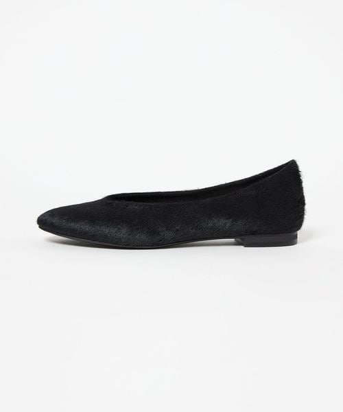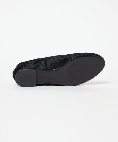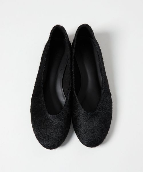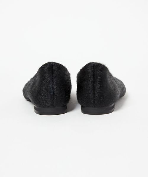 毛足のあるレザーがリュクスな質感で、足元にさりげなくアクセントを添えるフラットシューズ。