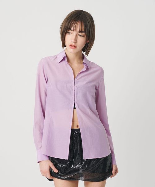 ミニマルシルエットのシャツをベースに、フロント部分をホックディテールにすることでクリーンな印象を引き立てる一着です。