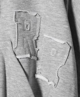 胸元にはブランドイニシャルのパッチデザインをあしらい、シンプルながら存在感のあるアイテム。