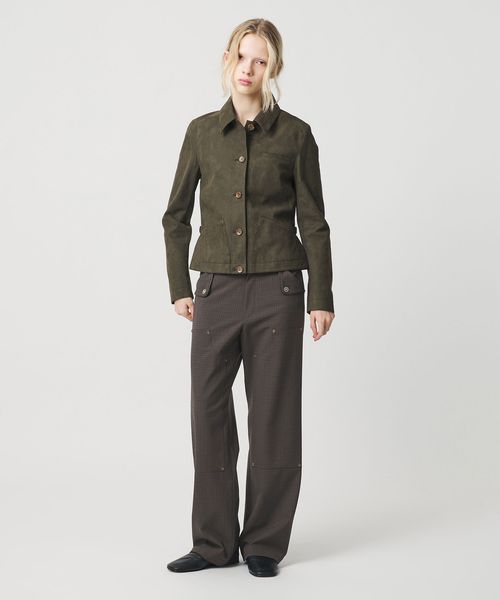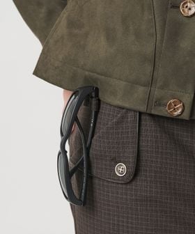 フロントのフラップディテールやリベットがアクセントになり、上品さの中にカジュアルなニュアンスを添えたこだわりの一着です。
