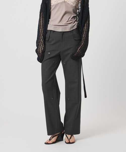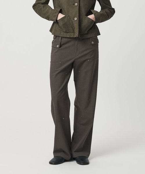 きれいめな佇まいにワークパンツのデザインを加えたメンズライクなチェック柄のボトム。
