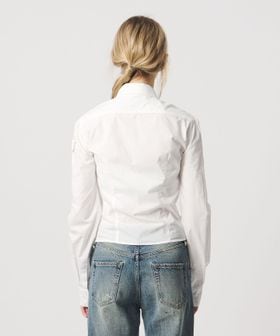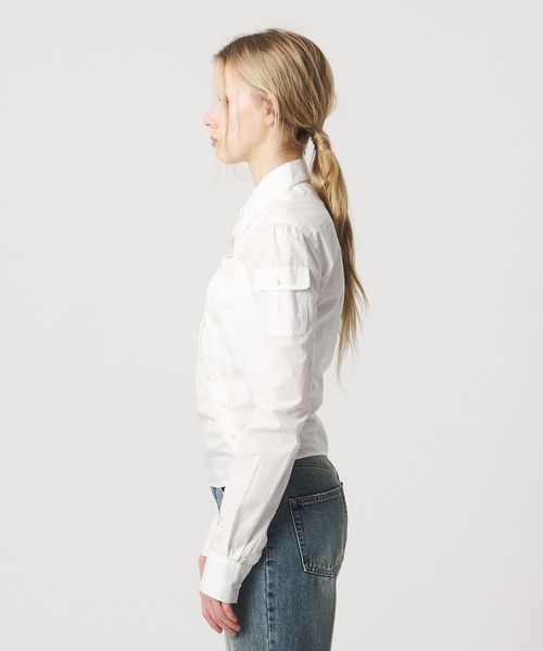 立体的なギャザーディテールが印象的で、豊かな表情を備えたヨークシャツ。