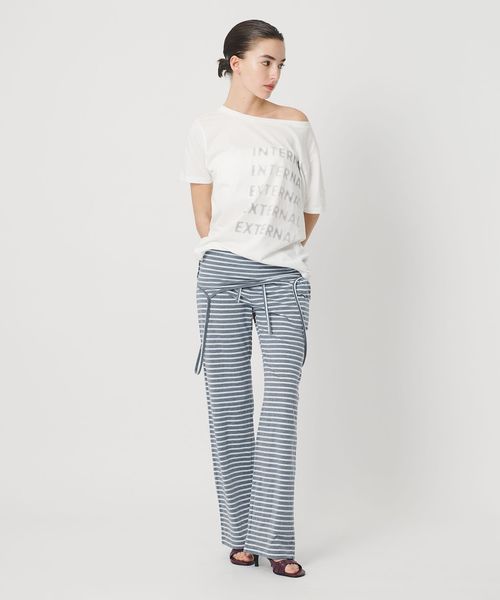 オールインワンをラフに着崩したようなデザインが<ATTISESSION>らしいボーダー柄のパンツ。