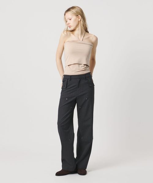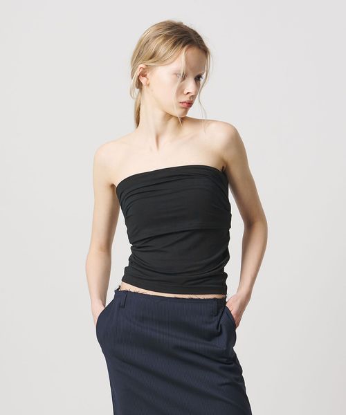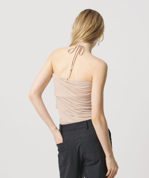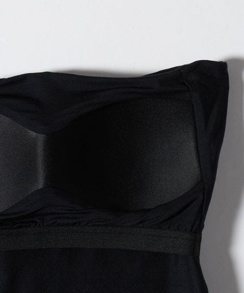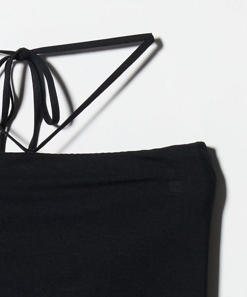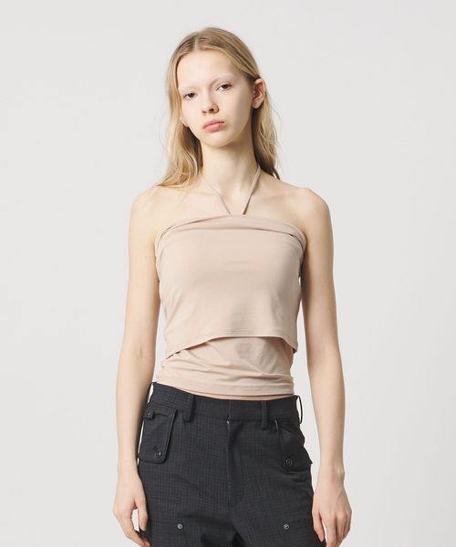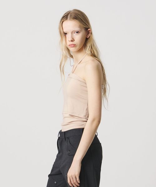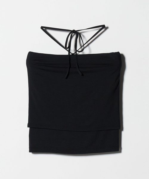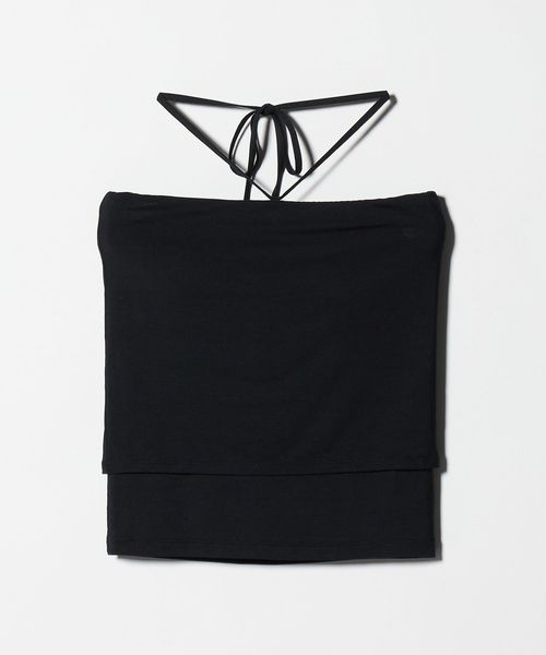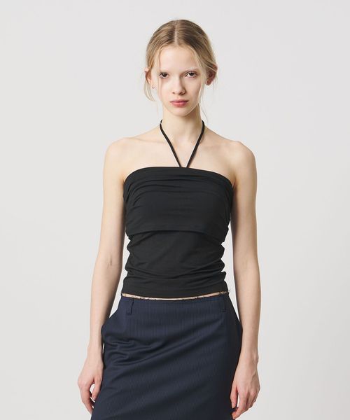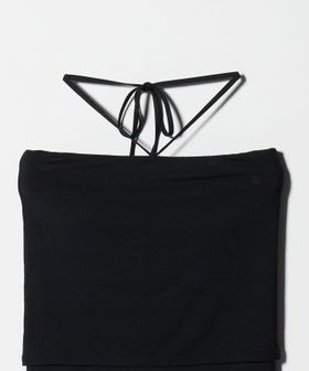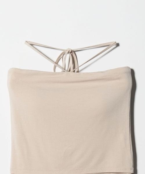 ミニマルなデザインの中に、こなれ感をもたらすホルターネック風のカップ付きチューブトップ。