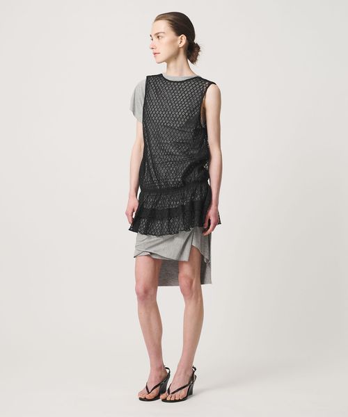 ティアードデザインながら、切り替え位置をローウエストに設定することで、甘くなりすぎずリラックス感のある印象に仕上げています。