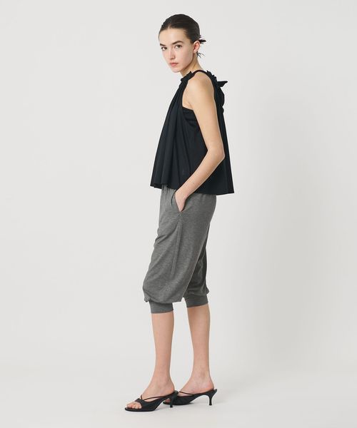 ひざ下をリブ仕様にすることで、シルエットにメリハリをつけたハーフ丈のジョガーパンツ。
