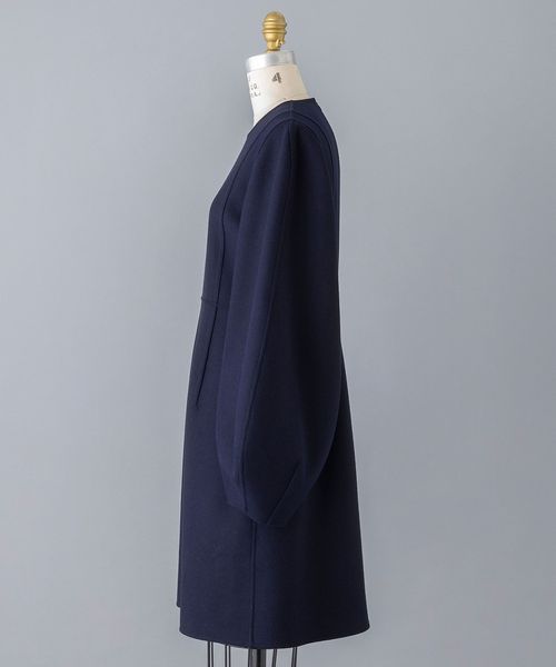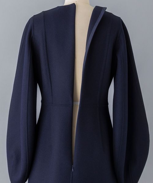 美しいボリュームスリーブが映えるメルトン素材のドレス
