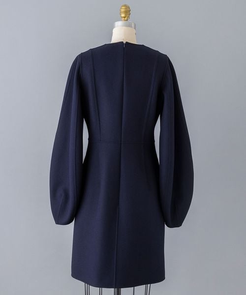 肩幅をコンパクトに、美しく広がるボリュームスリーブが映えるワンピース。