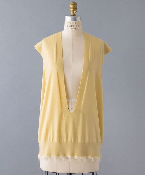 深く入ったVネックラインが印象的なニットベスト