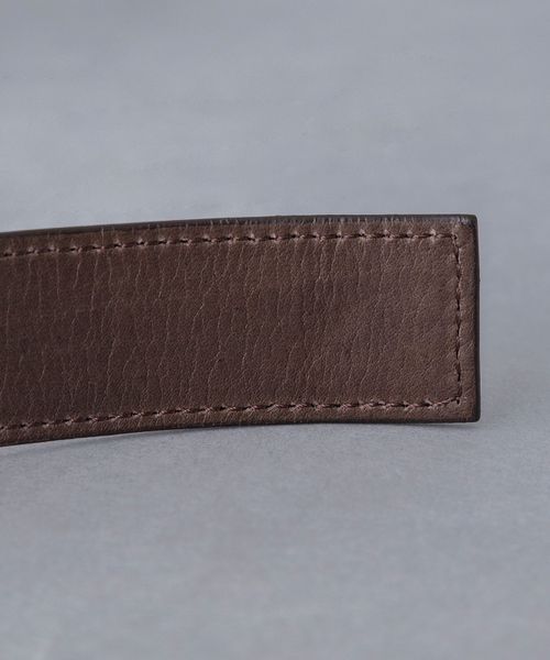 シンプルなバックルと長さのあるデザインがスタイリングしやすいナローベルト。
