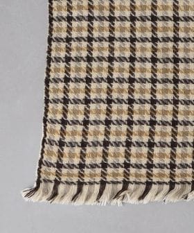クラシカルなハンドトゥースチェックと、やわらかなエクリュカラーのダブルフェイス。