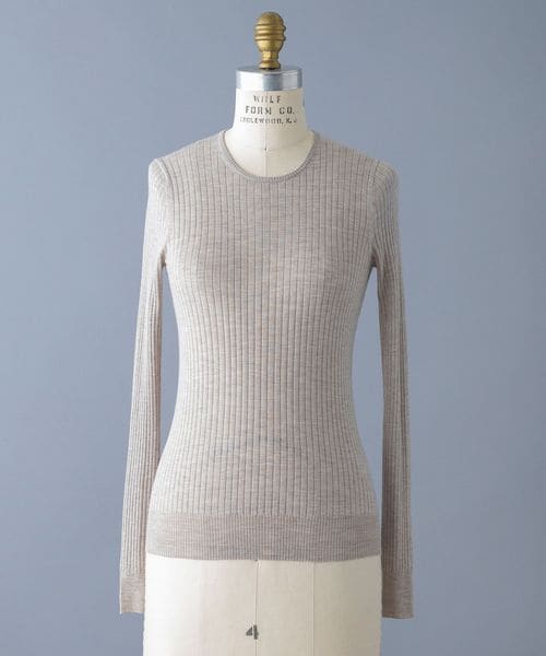 なめらかな肌触りが定評の18ゲージのクルーネックリブ編みニット。