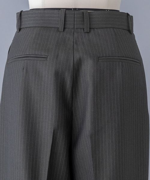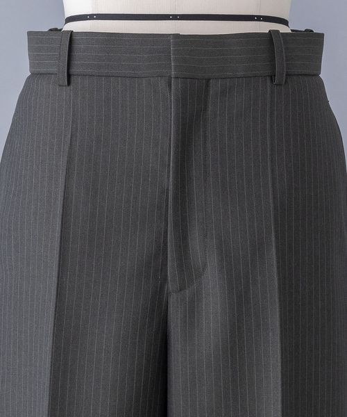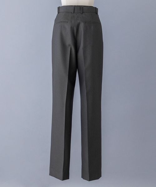 クラシックなストライプ柄が特徴のストレートパンツ