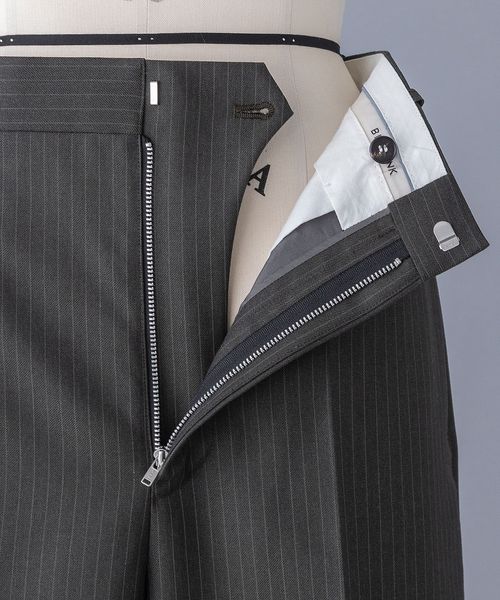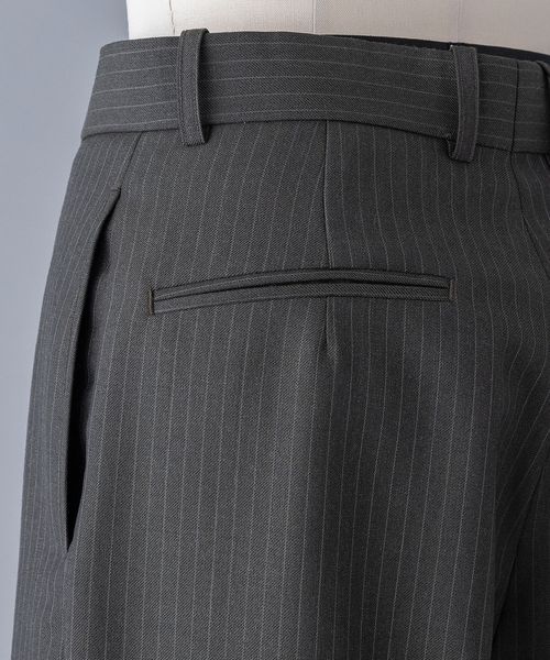 梳毛のハンサムな印象のストライプ柄で仕上げたパンツ。