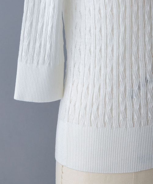 ややシアーな編地がレースな風合いがあり、さりげない個性を持ちます。