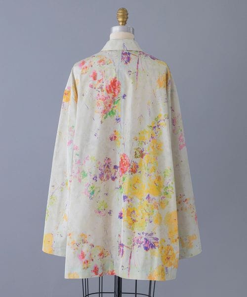 1枚ごとに表情の異なるマルチフラワーのほぐしプリントがポイントのカバーオール。