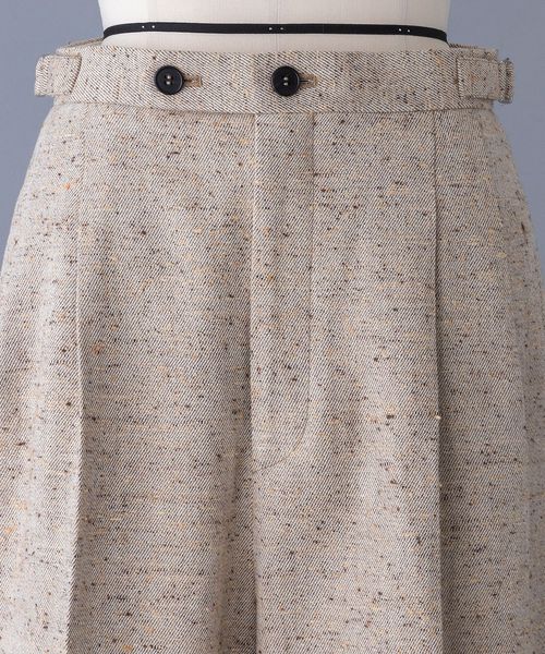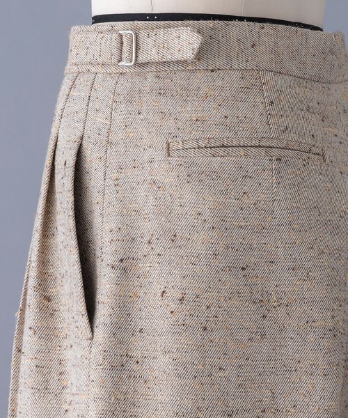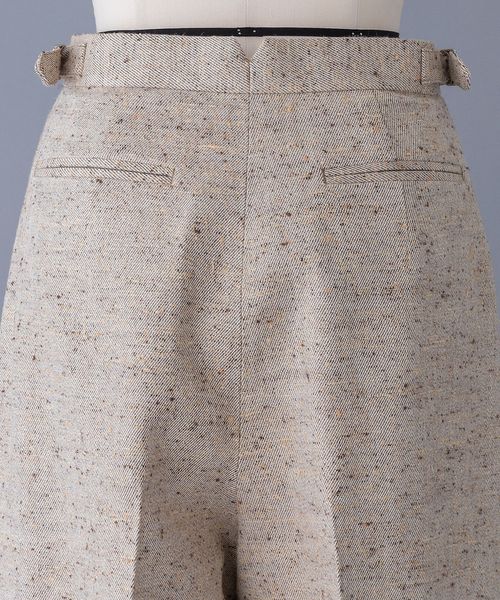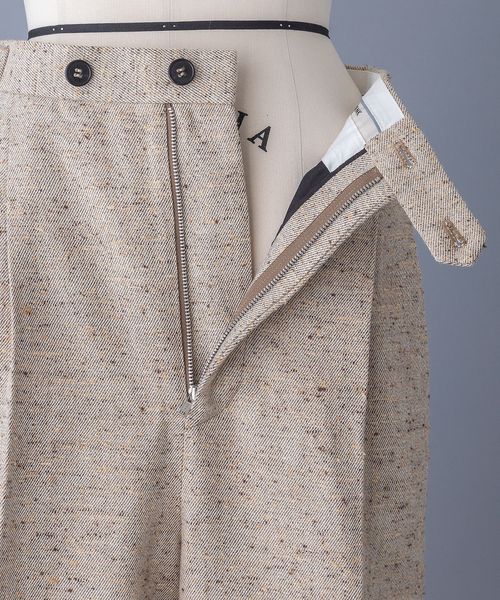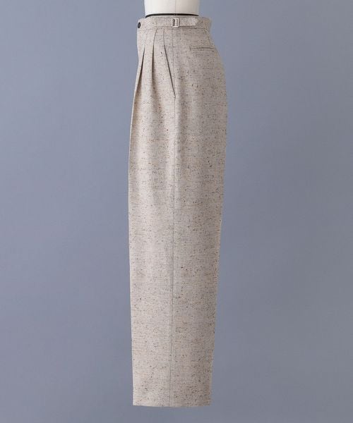 ジェントルな雰囲気のあるツータック、サイドベルト仕様のパンツ。