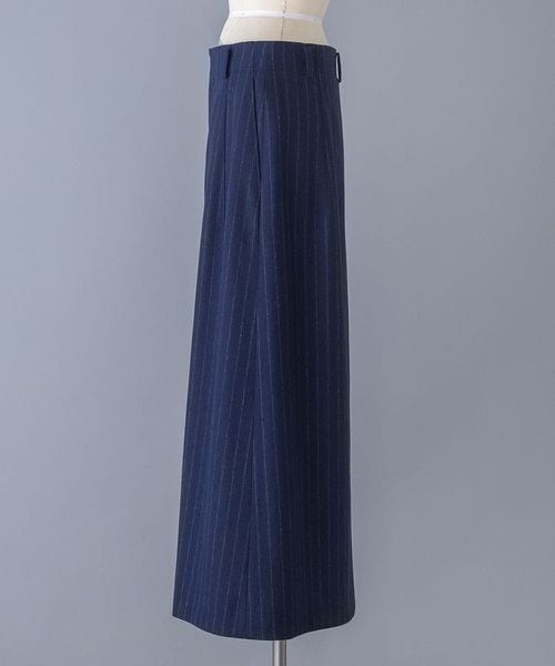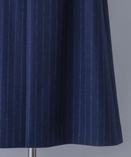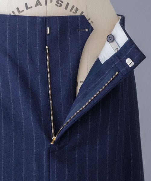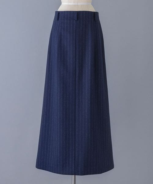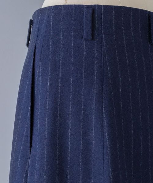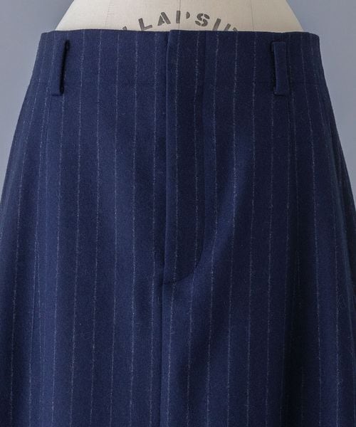 トラッドな雰囲気のあるストライプ柄で仕上げたトラぺーズスカート