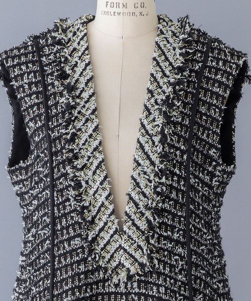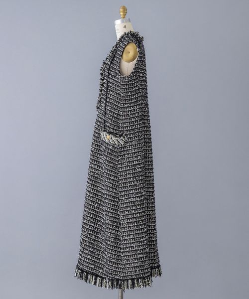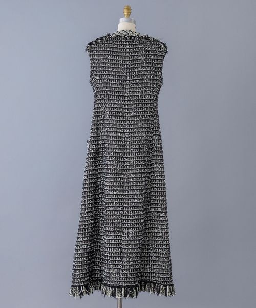 表情豊かなツイード素材を堪能できるVネックワンピース