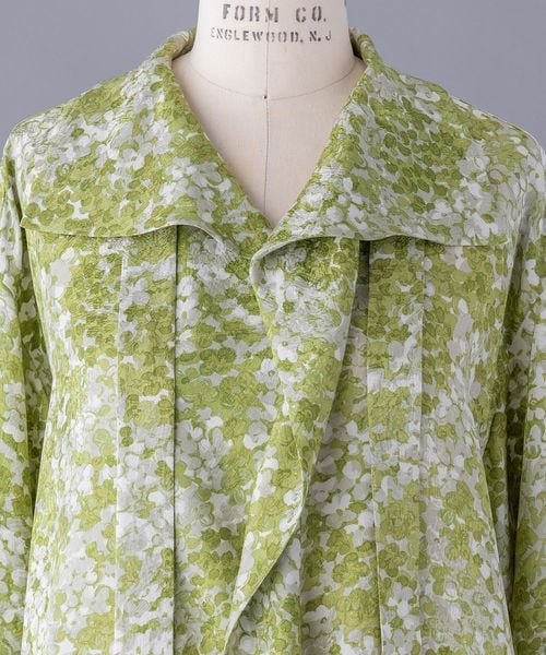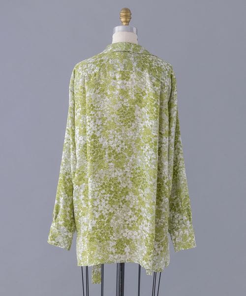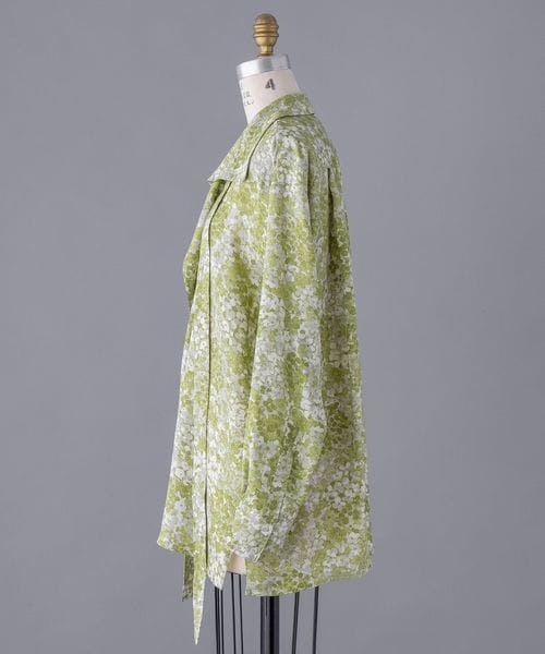 ビンテージ感あるフラワープリントが目を惹くボウタイブラウス
