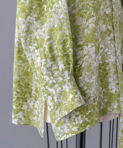 襟から前立てに続くフレアネックが特徴的な抜け感あるロングスリーブブラウス。
