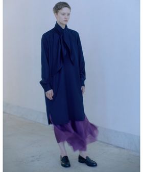 透明感のあるシアーな素材感は、レイヤードコーディネイトも美しく見せます。