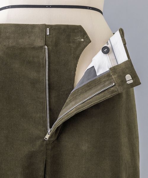 シャープな雰囲気のローウェストのコーデュロイパンツ