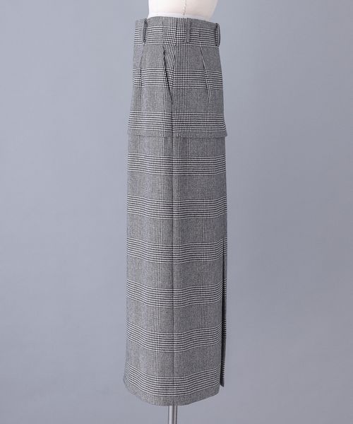 クラシックな雰囲気のあるチェック柄の素材で仕立てたシックな面持ちのタイトスカート。