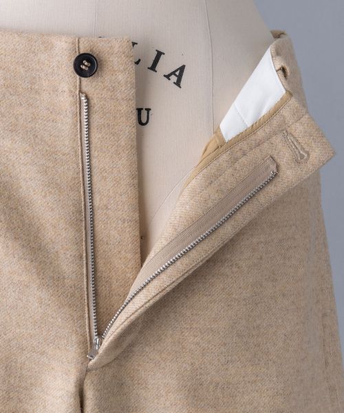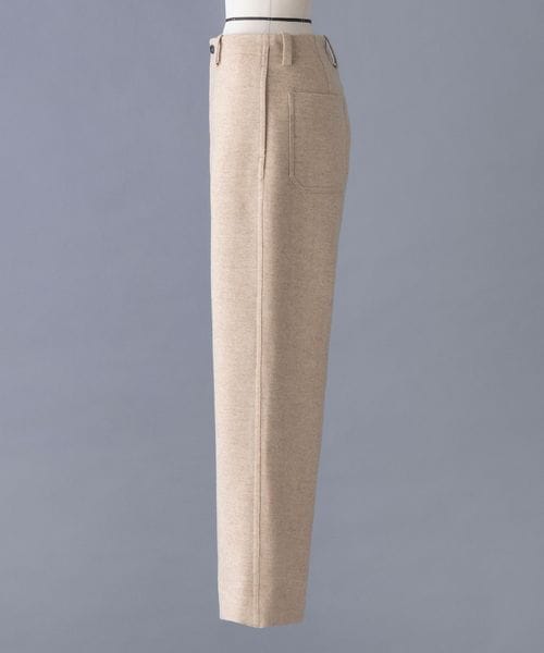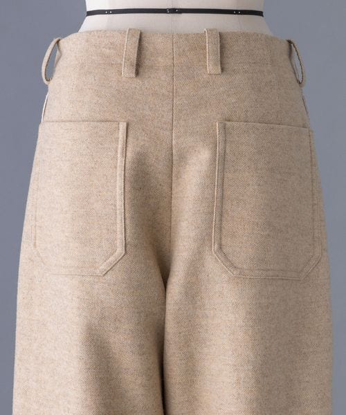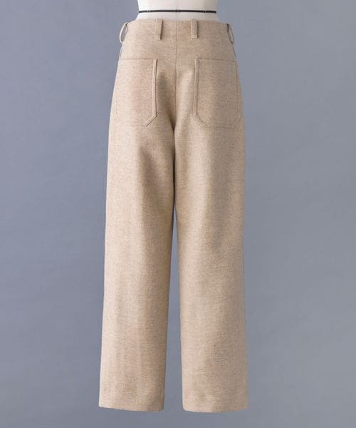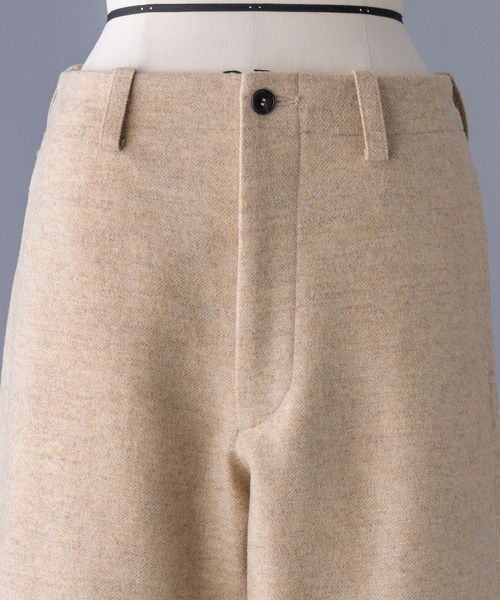 メランジの毛素材のやわらかい雰囲気が特徴的なミディアムフィットなパンツ。