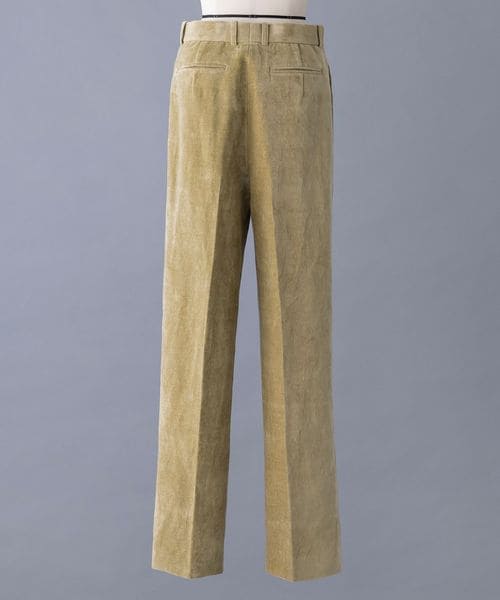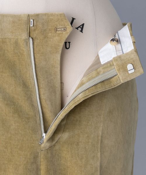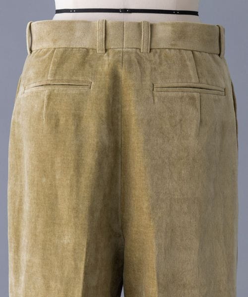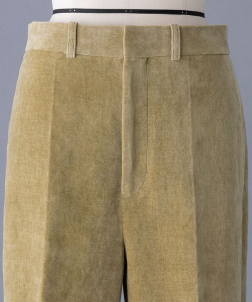 落ち着いた表情のベルベット素材が映えるストレートパンツ