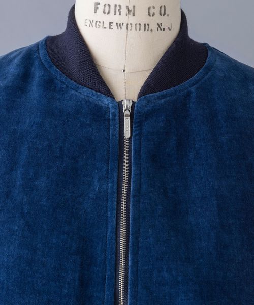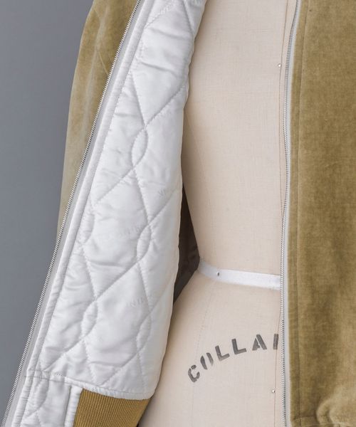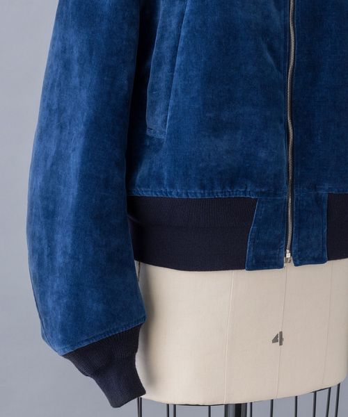 落ち着いた表情のベルベット素材がポイントのジップブルゾン