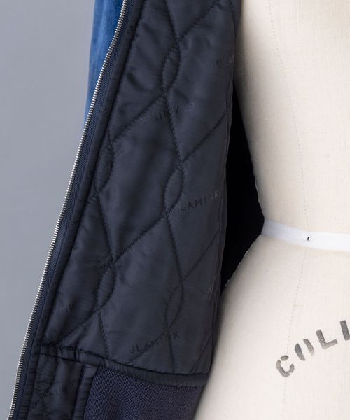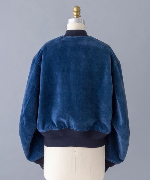 メンズライクなデザインでいて、落ち着いた艶のあるベルベット素材が上品さをプラスするジップアップブルゾン。