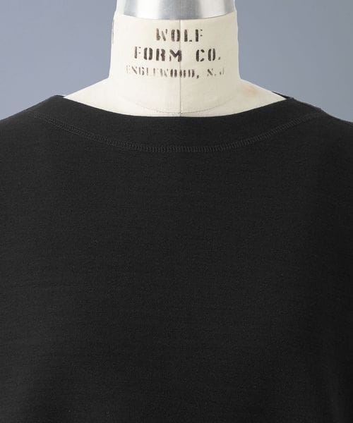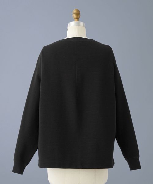 狭めにとったボートネックのラインが上品な印象に仕上げるプルオーバー。