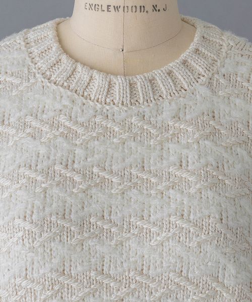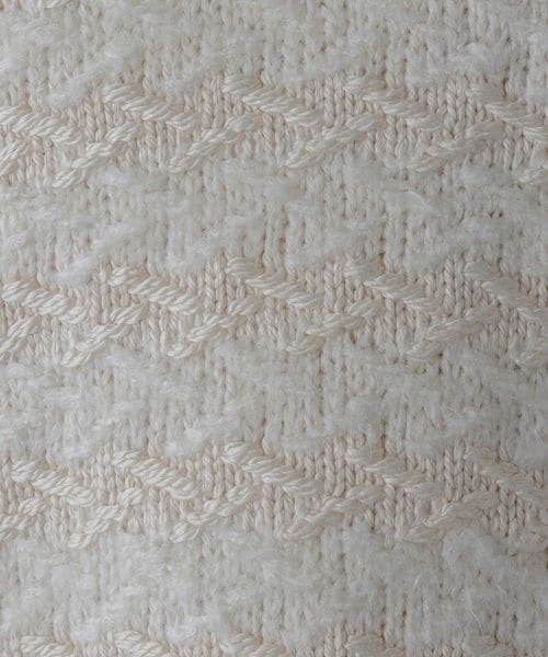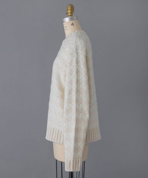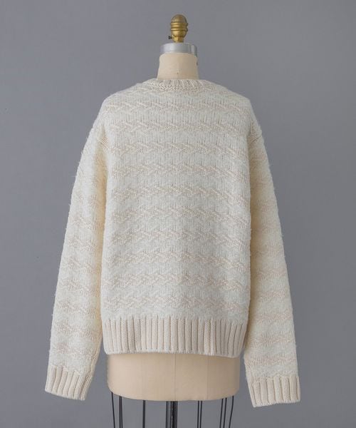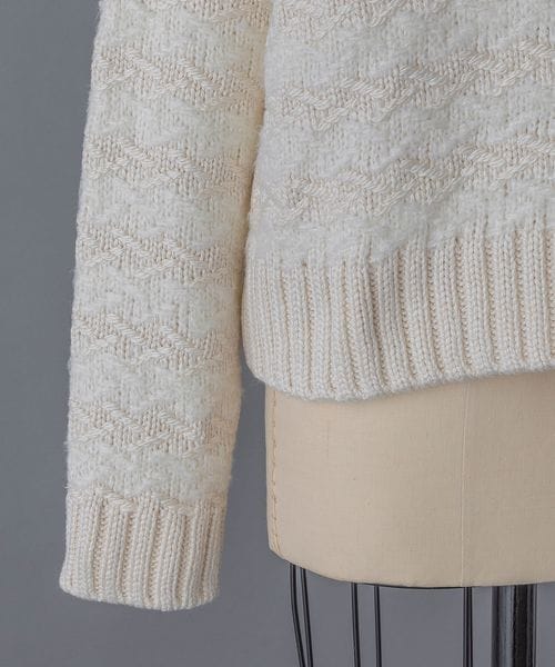 風合いの異なるシルク糸で構成されたパターン編みが美しく映えるニット。