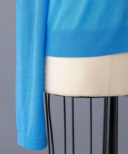 なめらかな肌触りのカシミヤシルク素材で編み立てたハイゲージのニット。