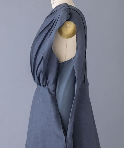 重なり合うオーガンジー素材の表情が美しく映えるノースリーブドレス