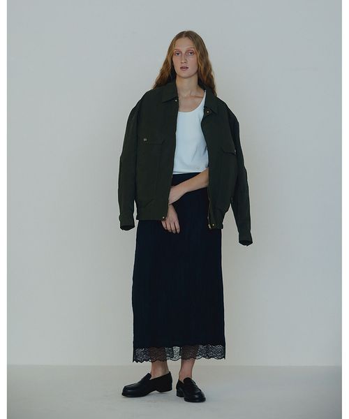 相反するフェミニンな素材やドレッシーなスタイリングとのコーディネイトが映える1着です。