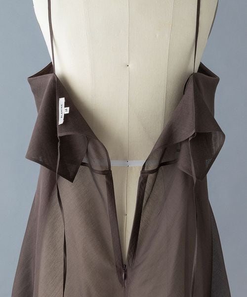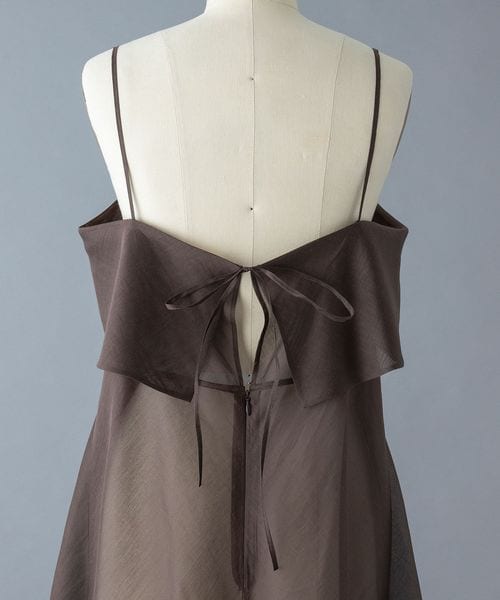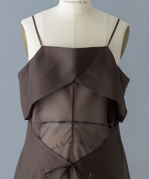 両サイドにひらりとなびくディティールを配したシアーなキャミソールワンピース。