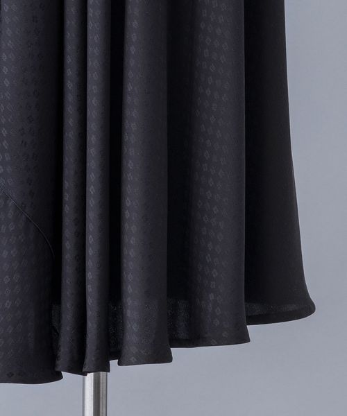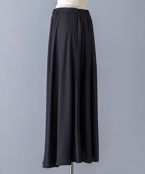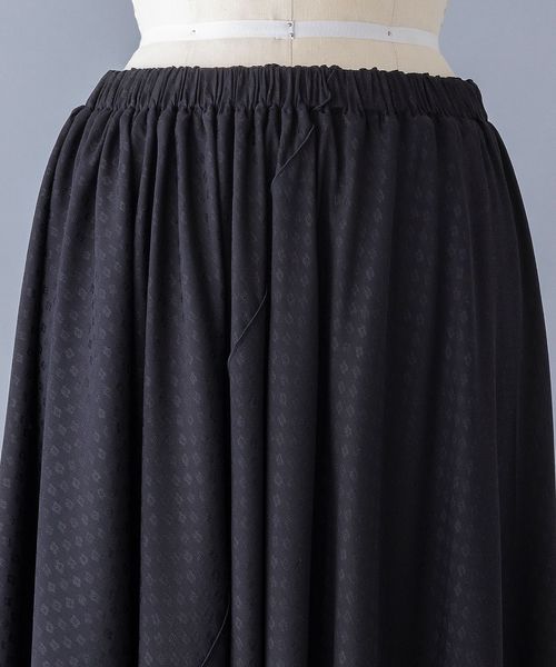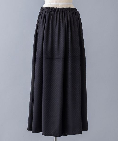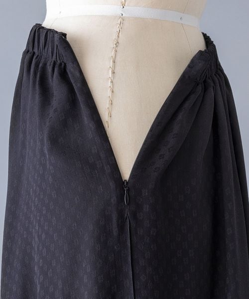 ブラックのモノトーンで表現されたフラワージャカード模様がシックでいて可憐な雰囲気のギャザースカート。