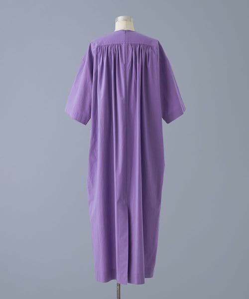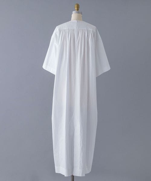 たっぷりとしたバックギャザーデザインがアクセントのショートスリーブワンピース