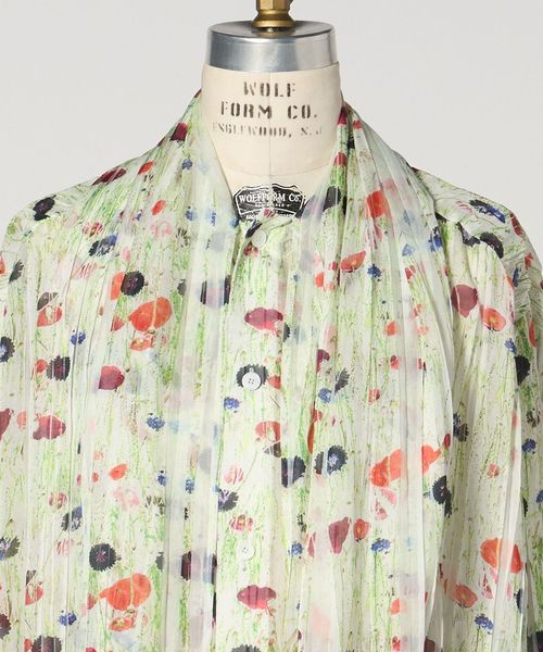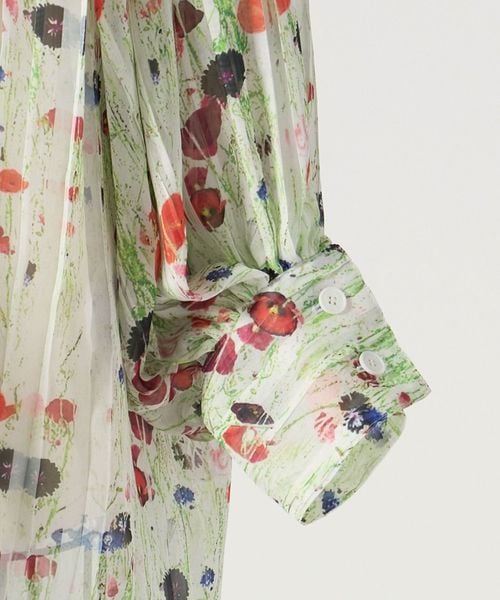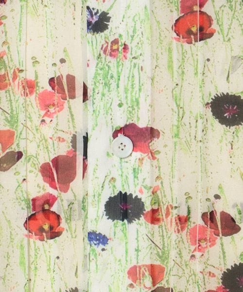 軽やかなポリエステル生地にのせたポピーをモチーフとしたカラフルなボタニカルプリント柄が特徴。
