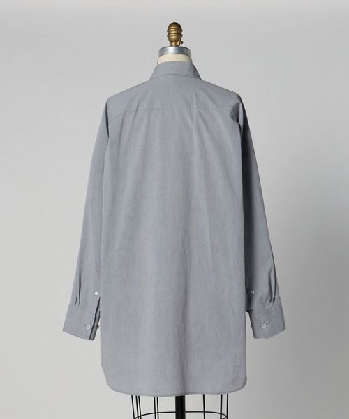 襟元をやや大きめにデザインがポイントのオーバーサイジングのシャツ。