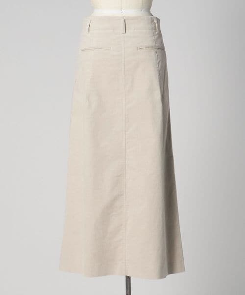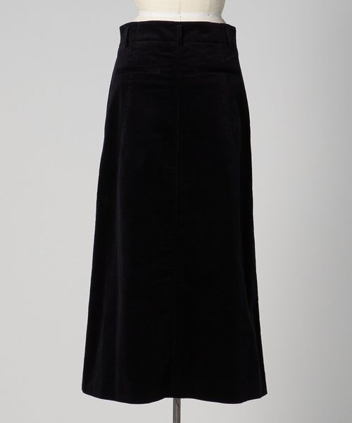 すっきりとしたAラインシルエットのコーデュロイ素材のロングスカート。