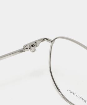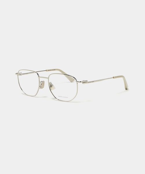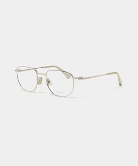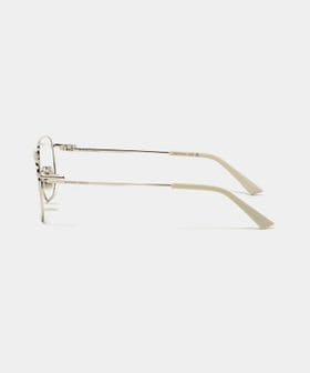 シルバーカラーの華奢なフレームがシャープな印象を与えるアイウェア。