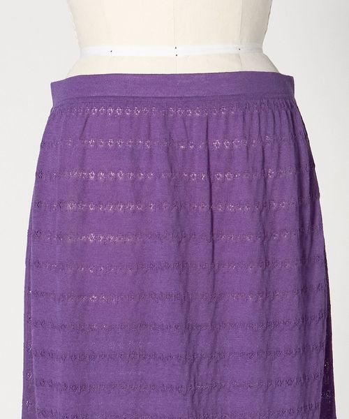 透けのある繊細なレース編みで仕上げたロングスカート。