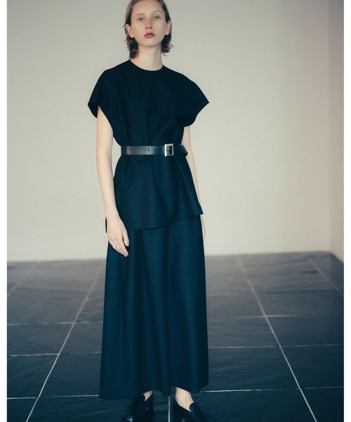 ハイウェストのすっきりとしたウェストラインとやわらかなフォルムが特徴のロングスカート。