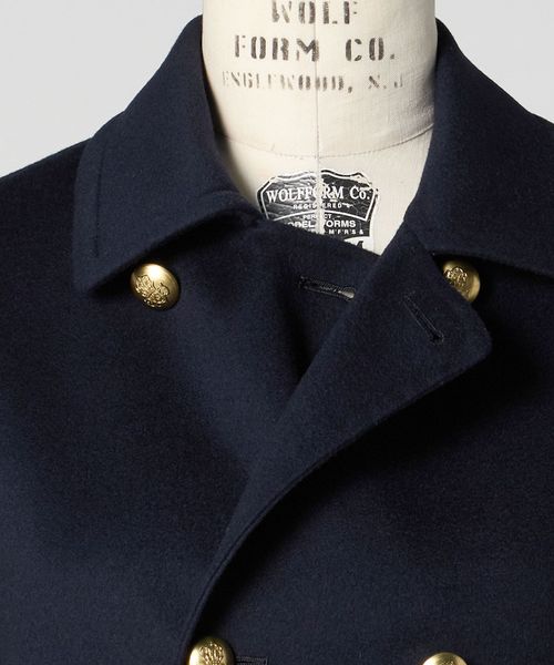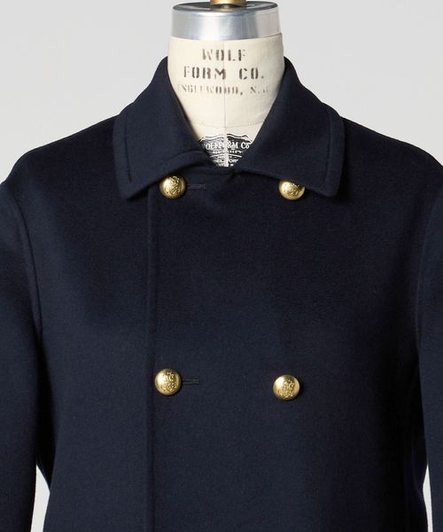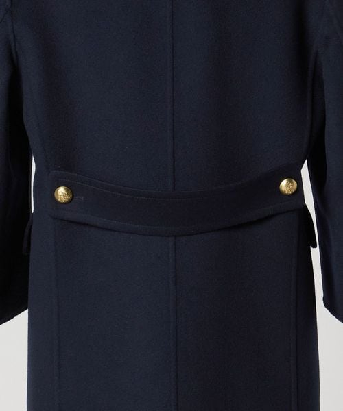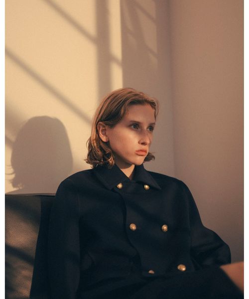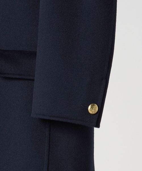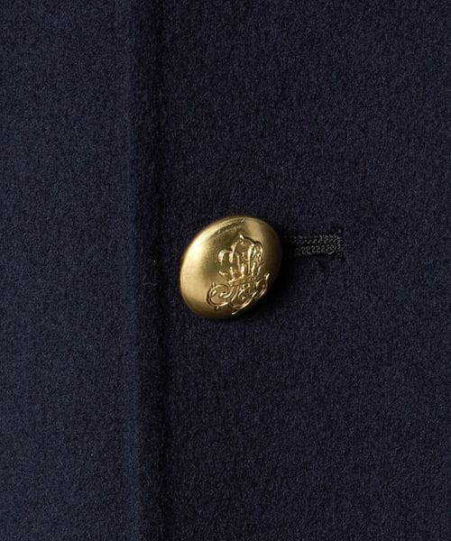 ネイビーのメルトン素材にのせたゴールドカラーのボタンがアクセントに。
