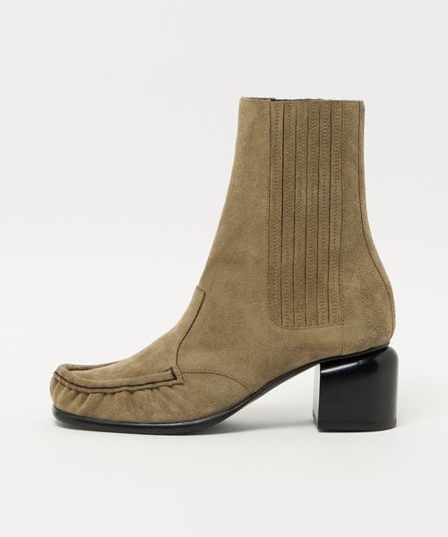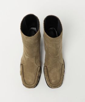 風合いのある素材とシェイプのかかったフォルムが特徴のショートブーツ。