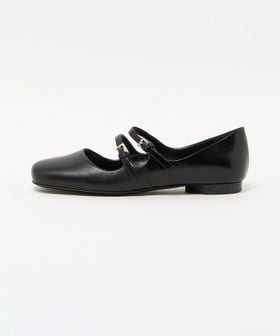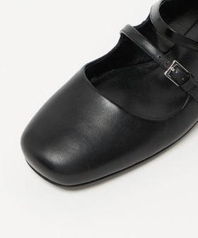 バレリーナシューズのようなフェミニンな印象もありながら、丸みのあるスクエアトゥがシャープな雰囲気をプラスするフラットシューズ。