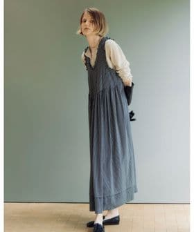 フリルのトリミングデザインのタンクトップにギャザースカートをつなげた軽やかなワンピース。